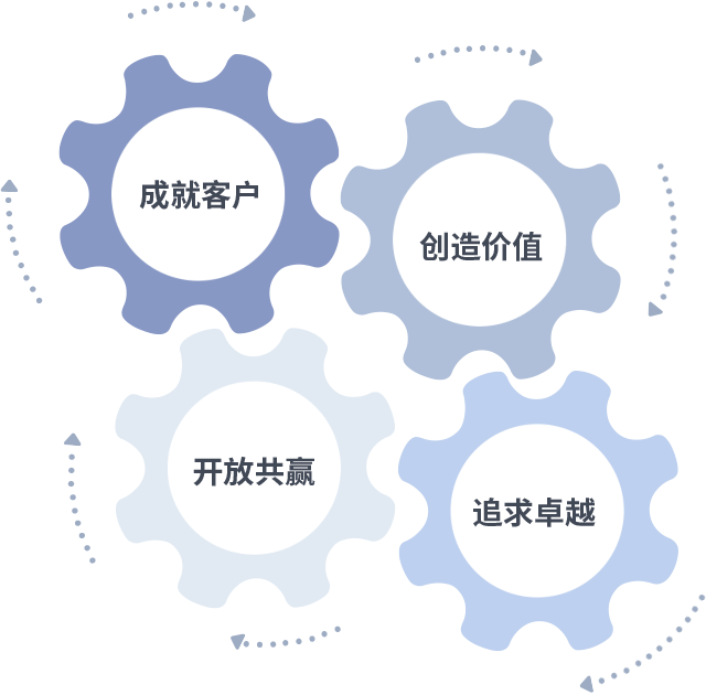 成就客户是一切决策的出发点,创造价值是衡量所有工作的标准,追求卓越是AGGAME做事做人的态度,开放共赢是AGGAME的格局也是最终的结果。价值观的齿轮环环相扣,推动着组织里的每个人不断向前。